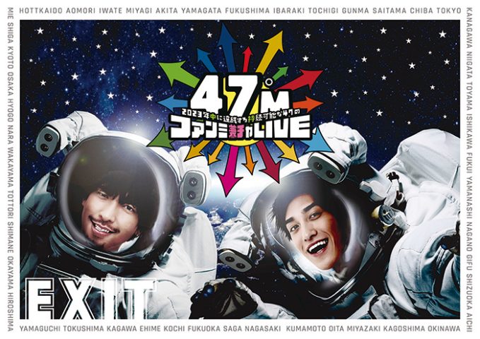 吉本興業所属のお笑いコンビ「EXIT」が47都道府県を巡り、各地にちなんだ内容を届けるツアー。