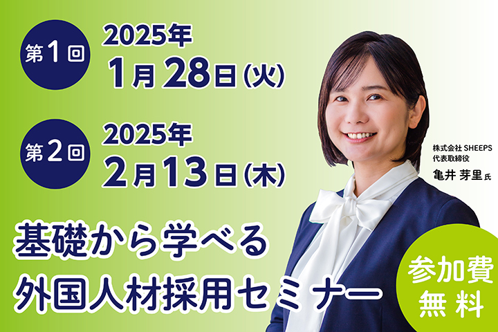 【第1部】基礎から学べる外国人材雇用セミナー(講師:亀井 芽里 氏 株式会社SHEEPS)14時~
