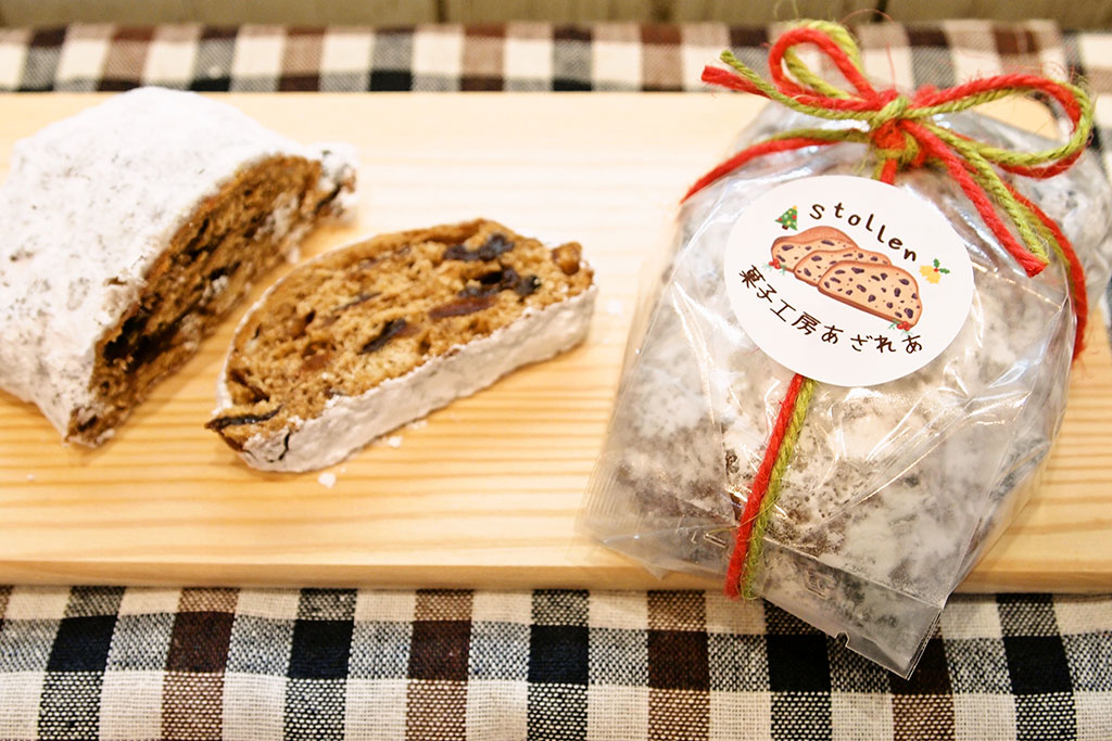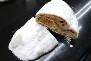 クリスマスまでに少しずつ切り分けて楽しむドイツのお菓子。薄切りにしてお召し上がりください。