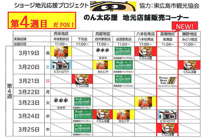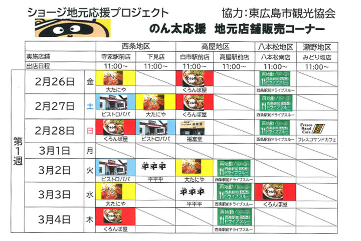 ショージ地元応援プロジェクト「のん太応援 地元店舗販売コーナー」が2月26日~3月28日まで、各店舗ではじまっています!