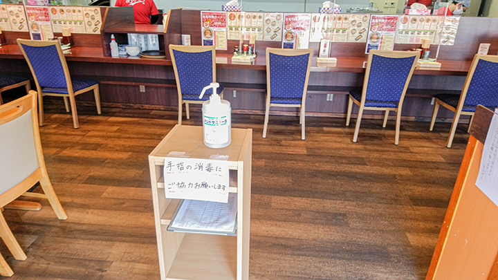 店頭にはまず消毒液があり、各席にはしっかりコロナ対策用の透明の仕切りがされているのでとっても安心ですね♪