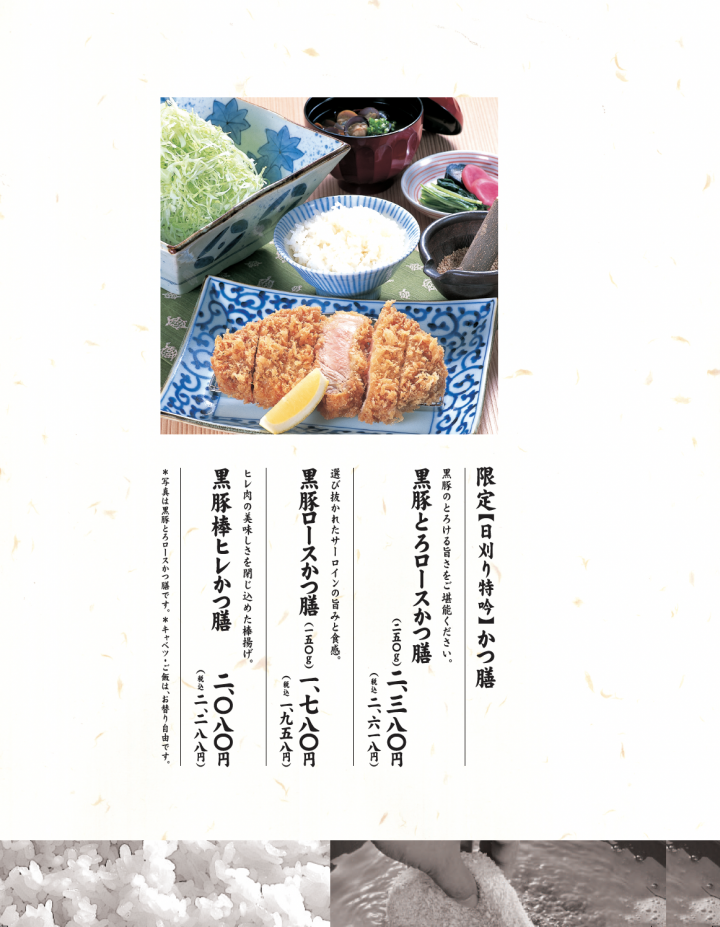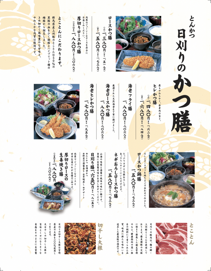 とんかつ日刈りメニュー