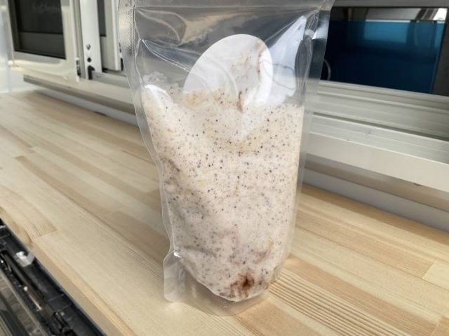 もみもみ…。おぉ、バナナをつぶす感触が面白い…。