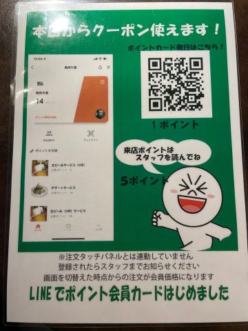 牛皇のLINE(ライン)のポイント会員カードが始まってます!