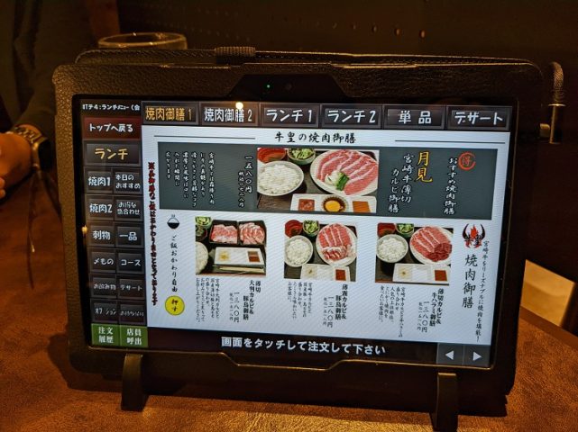御膳は4種類。「月見 宮崎牛薄切カルビ御膳」は1728円(税込み)です。