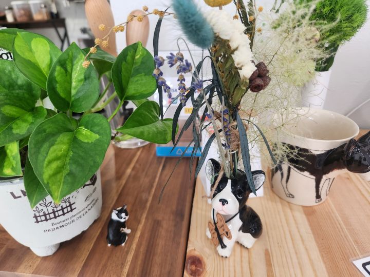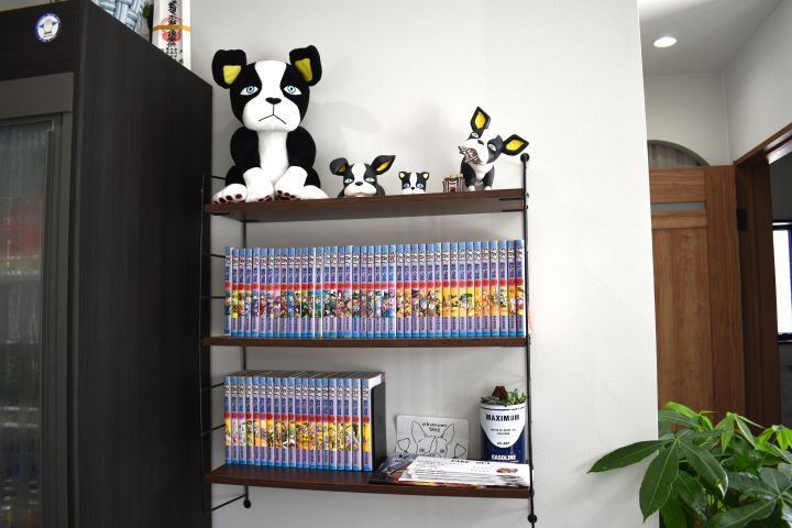 入口付近には人気漫画「ジョジョの奇妙な冒険」のキャラクター、イギーのグッズと漫画が置いてありました。看板に描かれているボンドくんとイギーが似ているとジョジョが好きなお客様も来店されたそうです。