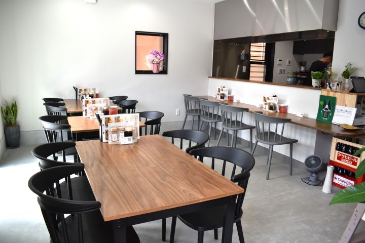 席はテーブル席が3つ、カウンター席が4席。店内は白を基調としていておしゃれな雰囲気。