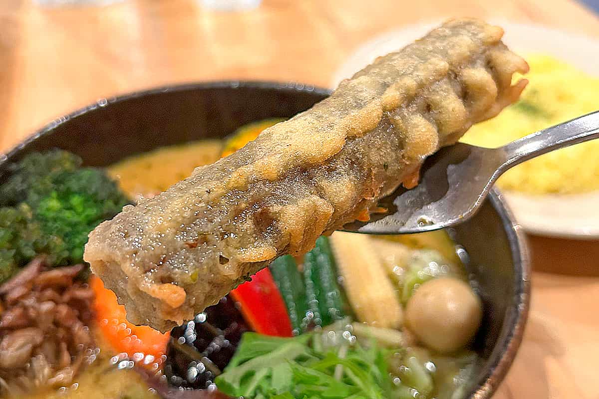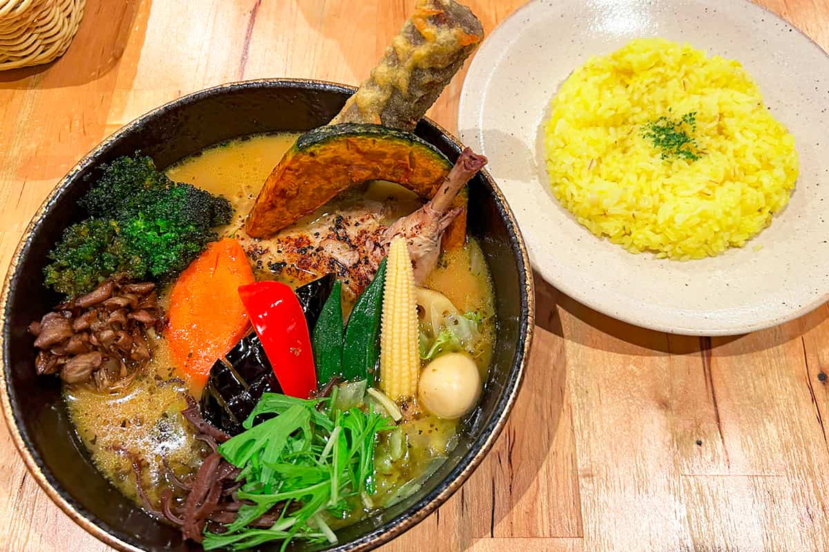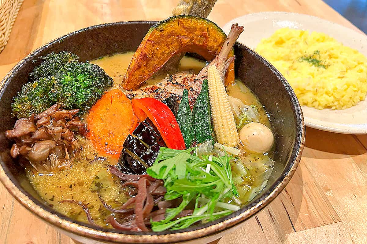 ターメリックライスには麦が入っていて歯応えが良く、スープに浸して食べてもおいしいです。食べ終わるころには体がポカポカ温まり、具だくさんなスープカレーに満たされました。