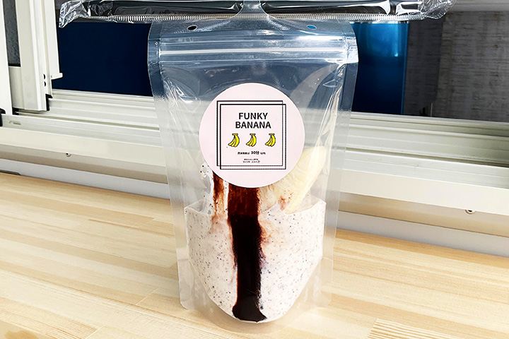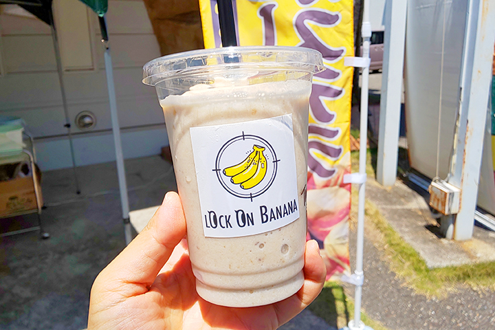東広島市西条下見にオープンした、LOCK ON BANANA(ロックオンバナナ)東広島店。冷凍の完熟バナナを使用したバナナジュースのお店は週末限定で営業しています。