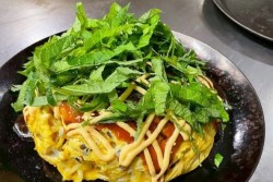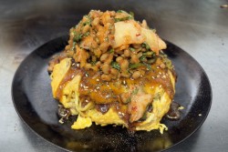 この「爆弾おこのみ」は、玉子W、納豆、大葉、たくあん、キムチという、お好み焼きとしては珍しい組み合わせが特徴。広島市内で15年間お好み焼きと向き合ってきた店主が、いつか自分のお店を持った時に作ろうと長年温めてきた自慢のメニューだそうです。納豆がどうしても苦手な方以外は、ぜひ一度は食べてみて欲しい逸品とのこと!
