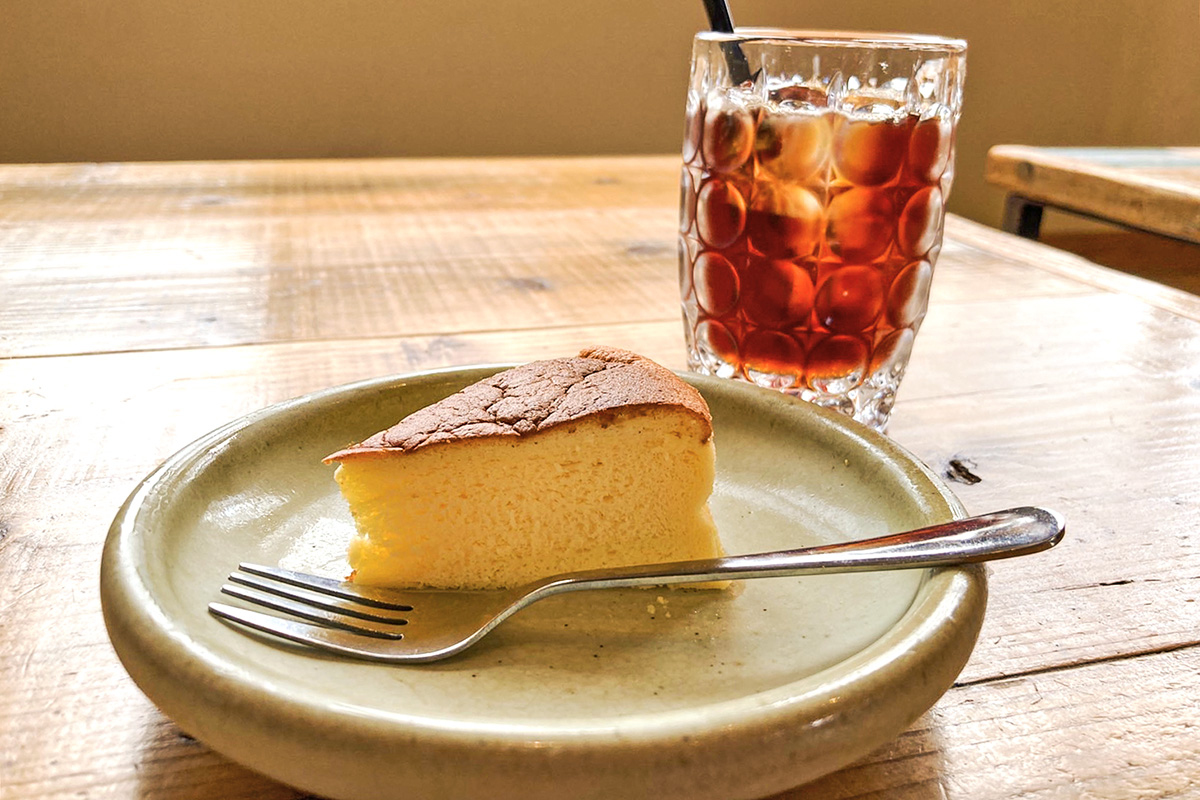 らくだ文庫では、夜に営業している西条下見のoi cafe(オイカフェ)のスイーツを取り扱っています。人気のバスク風チーズケーキは、表面がこんがりと香ばしく、しっとりとした生地が味わい深いスイーツです。