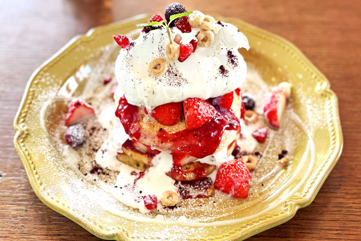ひまわりカフェでは、20種類ほどの種類豊富なパンケーキが人気。パンケーキは、旬のフルーツを使った期間限定のメニューも登場します。