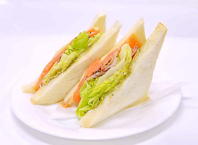 新鮮なサーモンとシャキシャキのレタスとポテトサラダのトリオ(三重奏)が口の中に広がります。