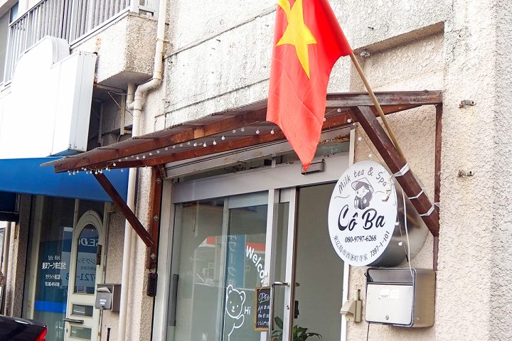 「CÔ BA(コバ)」は、2023年4月19日にオープン。以前はベトナム食材専門店だった場所で、店前にはベトナムの国旗が掲げてあります。