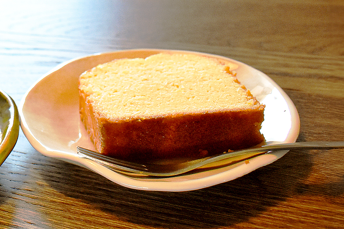 「本日のおやつ」(330円)もおすすめで、この日は店主の奥さんが手作りしたレモンのパウンドケーキでした。広島県産レモンの爽やかな風味が効いていて、コーヒーとの相性もばっちりです。