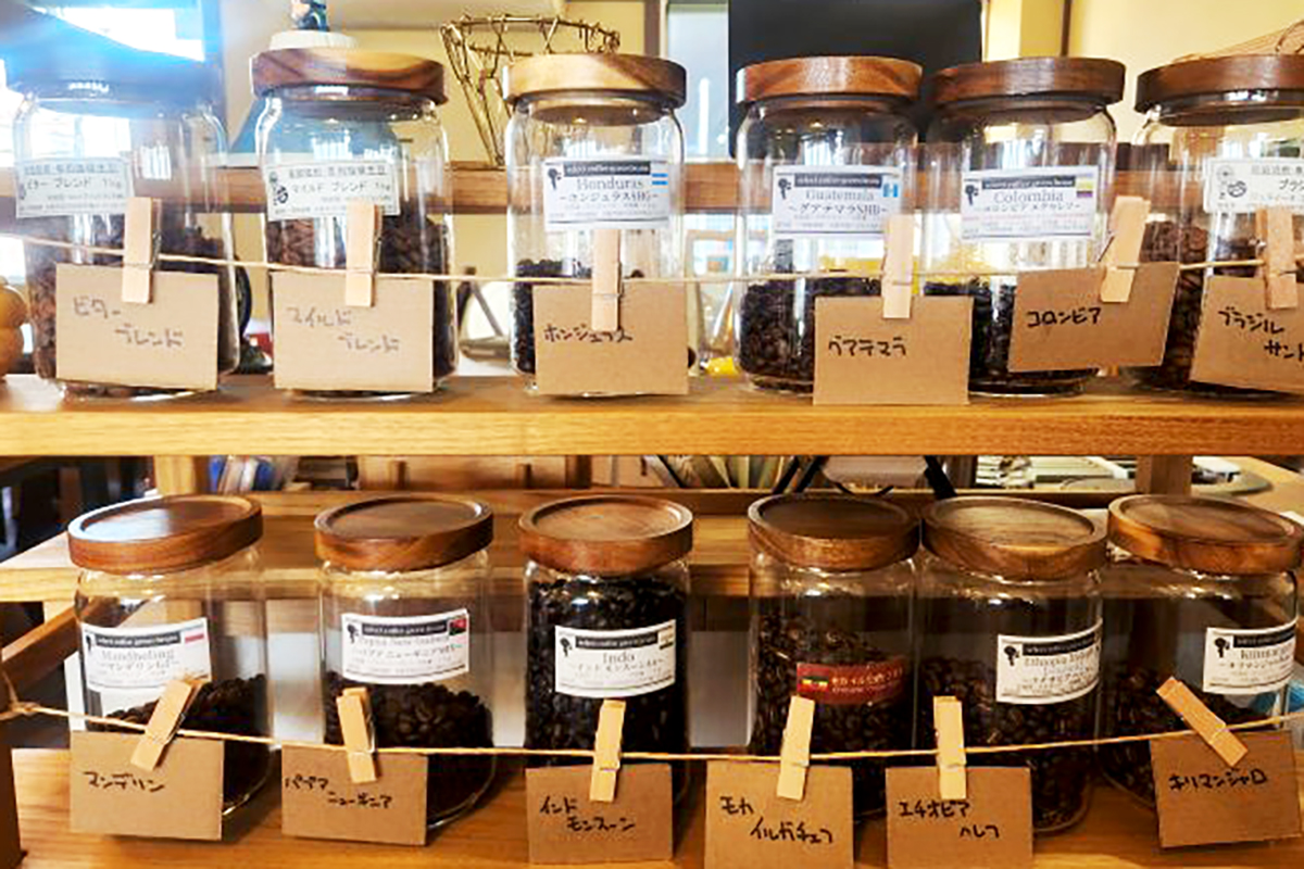 コーヒーはテイクアウトも可能。挽きたてのコーヒー豆も販売しており、自宅でもさむたいむの味を楽しむことができます。