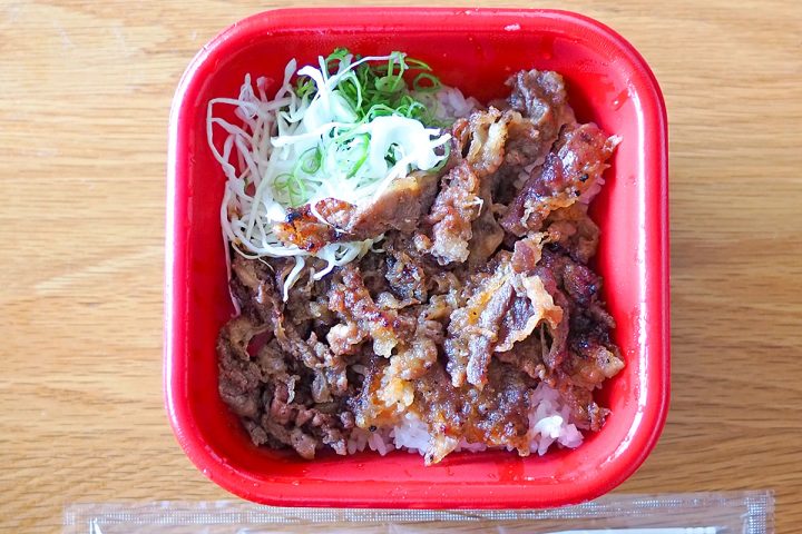 東広島市西条町御薗宇の「韓丼 西条店」は、カルビ丼とスン豆腐の専門店。テイクアウトの「カルビ丼」は、香ばしい直火焼きのカルビがたっぷりのっています。