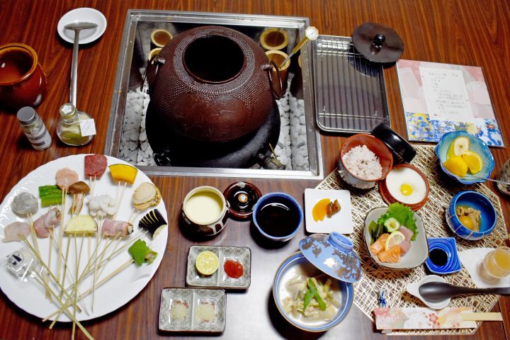季節の食材を茶釜の天ぷらで味わう旅館の料理をぜひ味わってみてください。