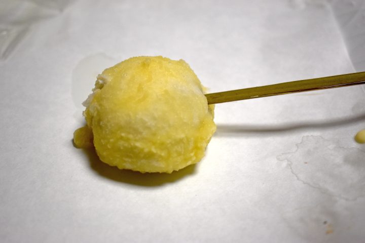 酒まんじゅうに衣をつけて揚げると、サクサクした食感。