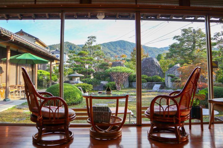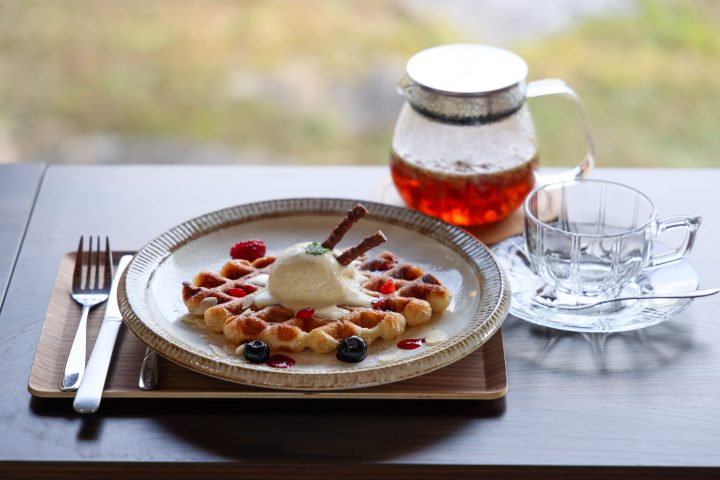 庭園を眺めながらゆっくりとした時間を過ごすことができる甘露cafe。