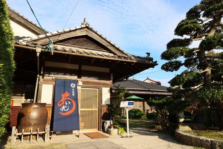 国道375号を呉方面に向かう途中、「喫茶・カラオケひろば」の看板を左に曲がり、道を奥に進むと左手に古民家「あい光」が見えてきます。