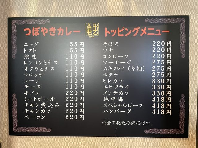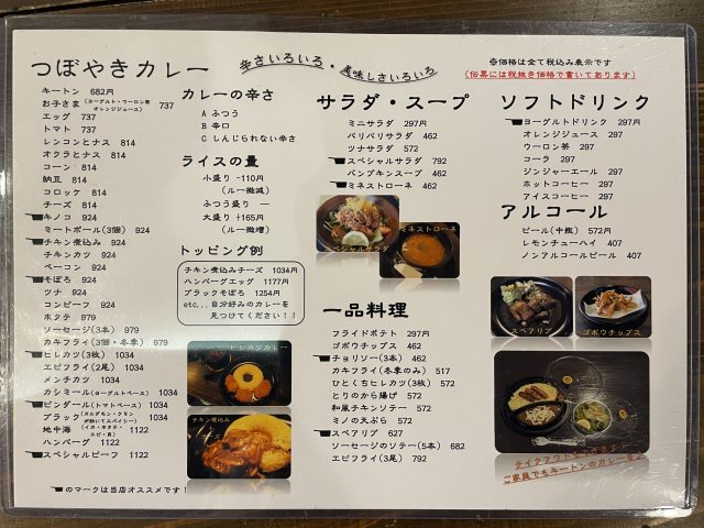 カレーメニューだけでもこんなに!メニュー表に「つぼ」のマークがついているものが人気メニューだそう。