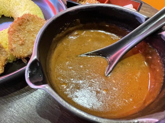 約30種類のスパイスが溶け込んだルーは、うま味が詰まったマイルドな辛さが口の中に広がります。ヒレカツの衣はサクサクで、スプーンで簡単にカットできるほどお肉がやわらかい。