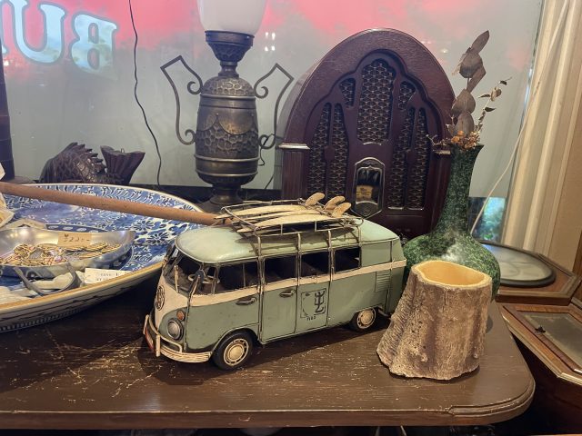 店内をじっくり見まわすと、インテリアもほとんどが骨董品で、お店に溶け込むように置かれています。使われていた時代も背景も異なる雑貨を眺めるだけでも楽しい。