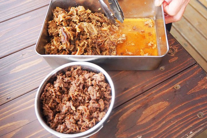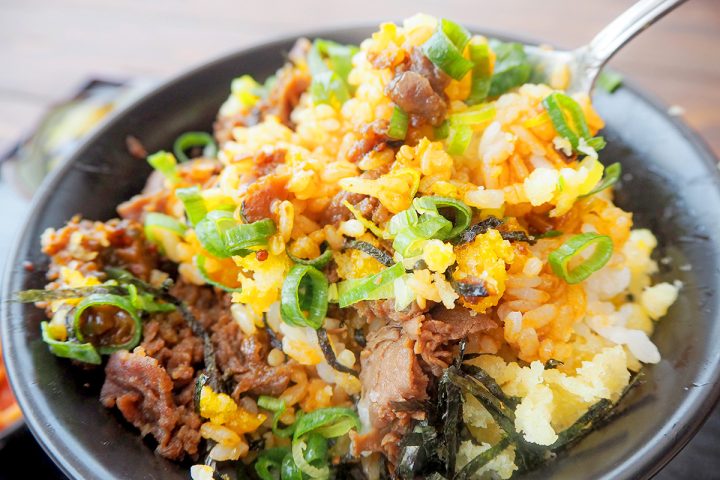 福富町産のご飯には、秘伝のたれがかかっています。