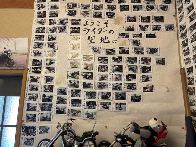 店内には、バイクで来店されたお客様の写真がいっぱい。店主の森岡さんの趣味はバイク。くろぼやを目的地に全国からライダー仲間が訪れ、写真を撮っているうちに、気が付けばこの数。「くろぼやをライダーの聖地に」と今も増え続けているそうです。