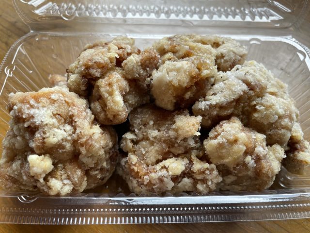 くろぼやのメニューは、どれもボリュームたっぷり。へそ丼トリオの他に人気なのは、お子さんにも大好評な「からあげ」。柔らかく、噛むとじゅっとうま味が出てきます。ご飯にもお酒のおつまみにもおすすめです。からあげはテイクアウトもできます。「冷めてもおいしいよ。」と店主の森岡さん。