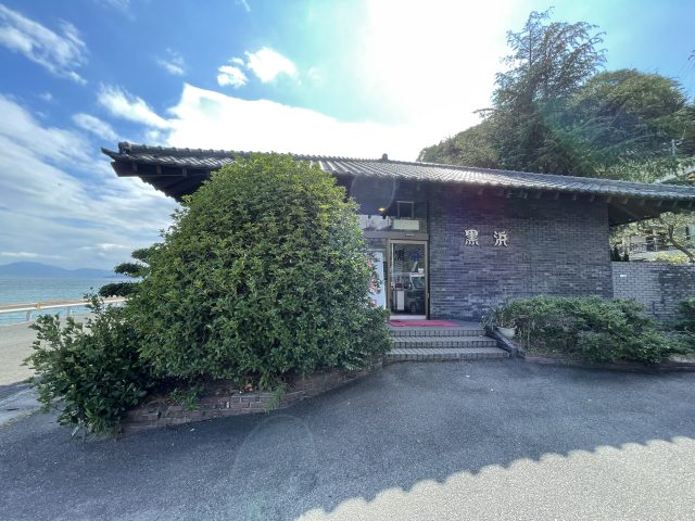 東広島市安芸津町小松原の「黒浜」は、瀬戸内海に臨む海辺のレストラン。お店は、大芝島に架かる大芝大橋の近くで、国道185号沿いの呉方面へ向かう黒地トンネル入口前にあります。