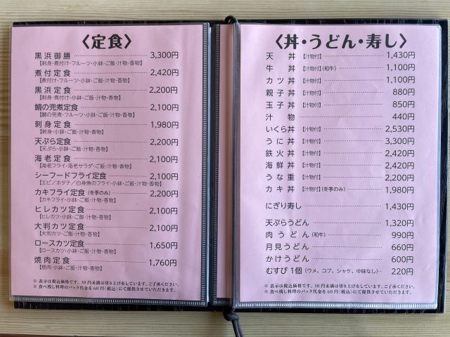 定食をはじめ、丼物などのメニューも豊富な黒浜。和食のお店と思いきや、洋食、中華、喫茶メニューと、かなりの数で、さまざまな年代のお客さまに長く愛されている理由のひとつ。「次は〇〇を食べようね。」という、会話が聞こえてきそうです。