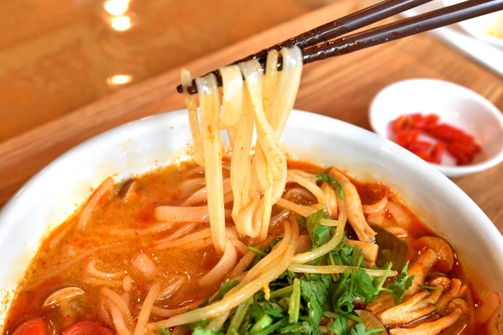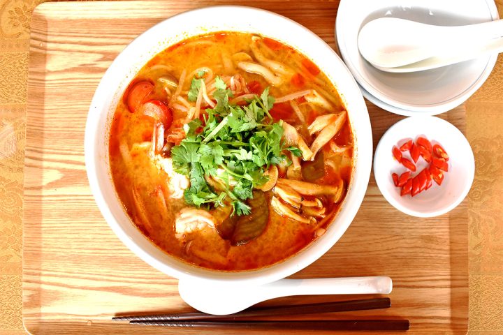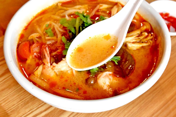 東広島市西条東の「ナッサコン クルアタイ」は、本格的なタイ料理が味わえるお店。タイの代表料理のトムヤムクンをラーメンで提供しています。