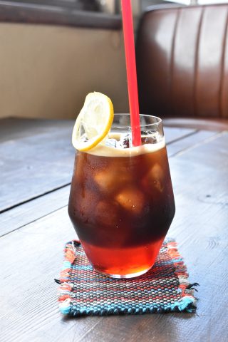 オレンジシロップとエスプレッソの二層のソーダに、広島県産レモンが添えられた期間限定ドリンク。ほろ苦く、さわやかな味わいで、夏にぴったりなドリンクです。広島県産のレモンを入れると、味の変化が楽しめます。