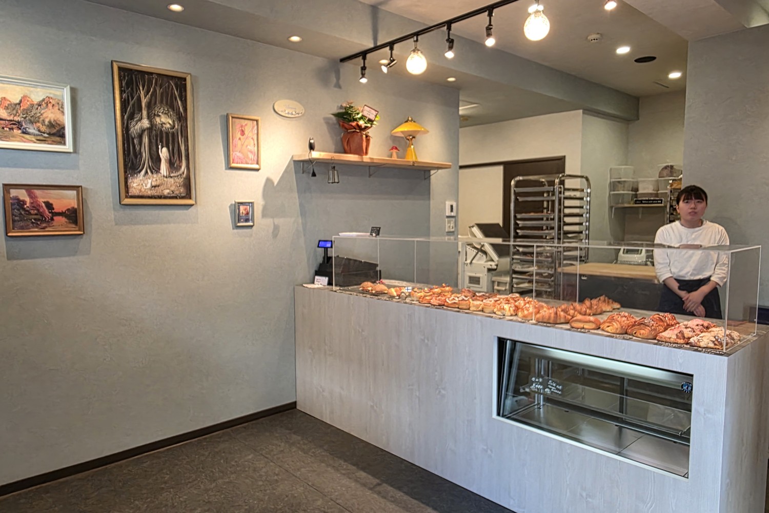店内は白を基調としたシンプルで清潔感あふれる空間。北欧風の絵画が壁を彩り、落ち着いた雰囲気の中でパンを選べます。Nordic 4 Bageriはテイクアウト専門店のため、持ち帰ってゆっくりパンを楽しむスタイルです。