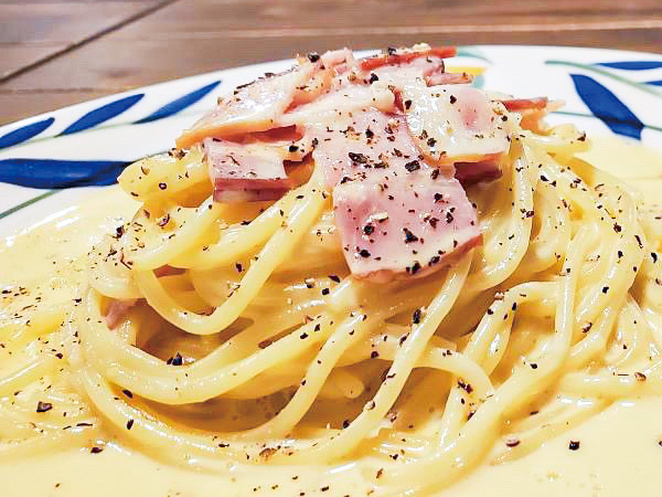 もっちりとした生麺パスタが味わえるアマーレ。チーズをふんだんに使用した「パルミジャーノチーズ カルボナーラ」は3月末までの期間限定メニュー。