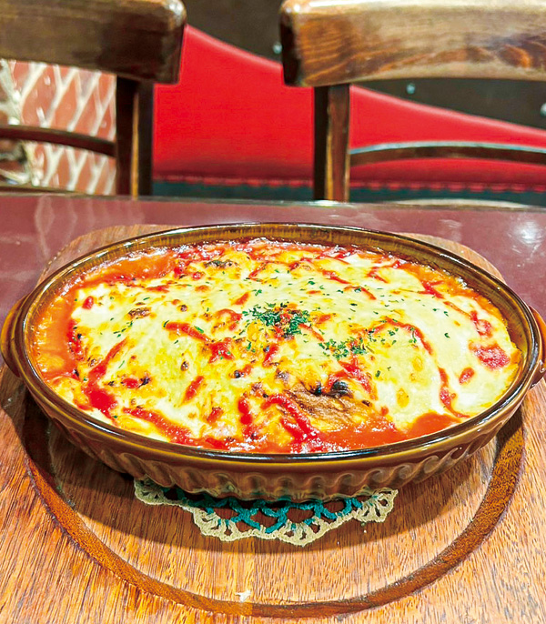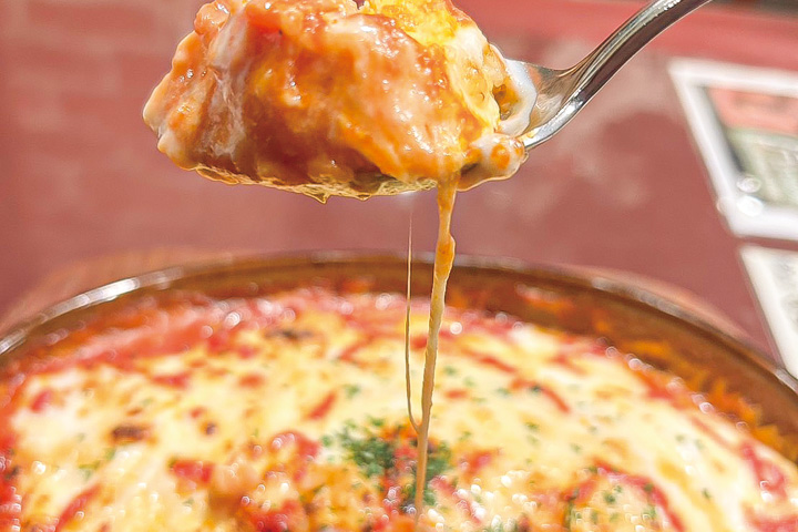 ぐつぐつと音を立てながら運ばれてきたオムライスドリア。表面のチーズをうまく崩しながらスプーンを入れてみると、中から出てきたのは名のとおりオムライス。自家製のトマトソースで仕上げたライスはマッシュルーム・コーン・タマネギなど具がたくさん。そのライスを卵でしっかりと包んだらまずはオムライスの完成。それから器にトマトソース、出来上がったオムライス、ホワイトソース、チーズを乗せオーブンで焼き上げた手間のかかる一品。