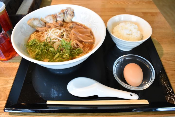 地鶏らーめん、小ご飯、こい地鶏生卵を注文しました。