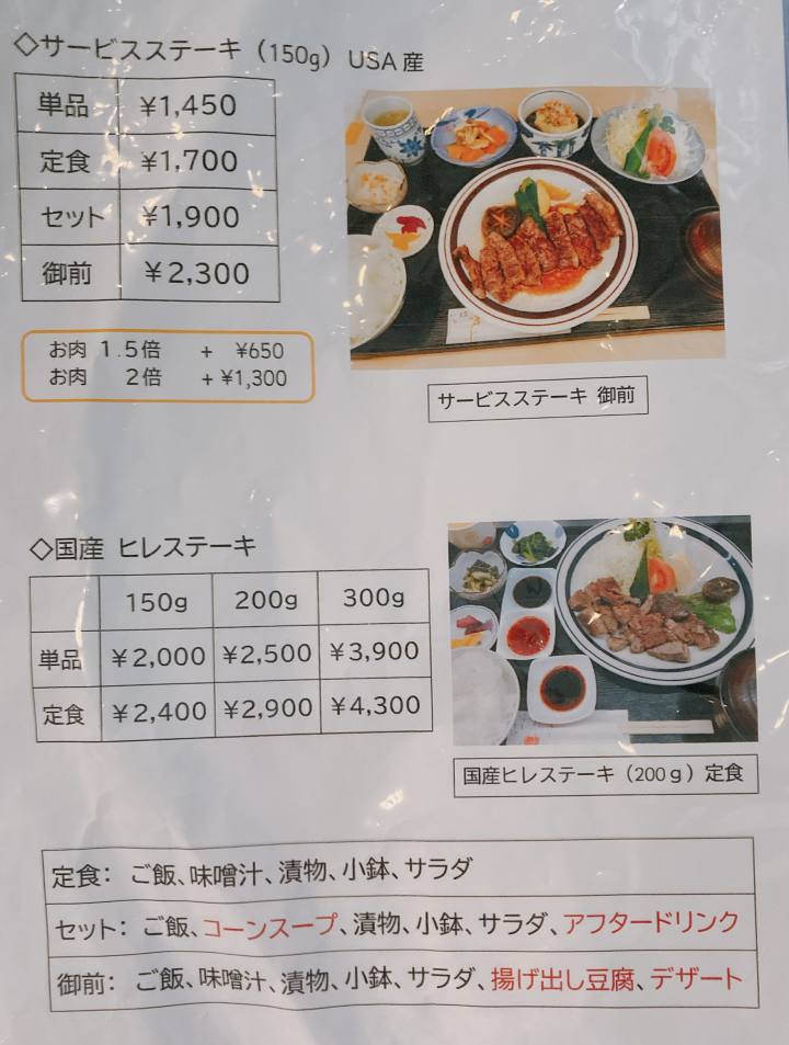 - ステーキメニュー