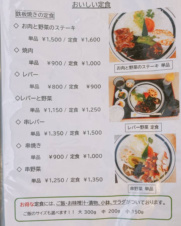 「お肉と野菜のステーキ」「ハンバーグ」「レバーと野菜」「国産ヒレステーキ」「ステーキ丼」が人気だそう。