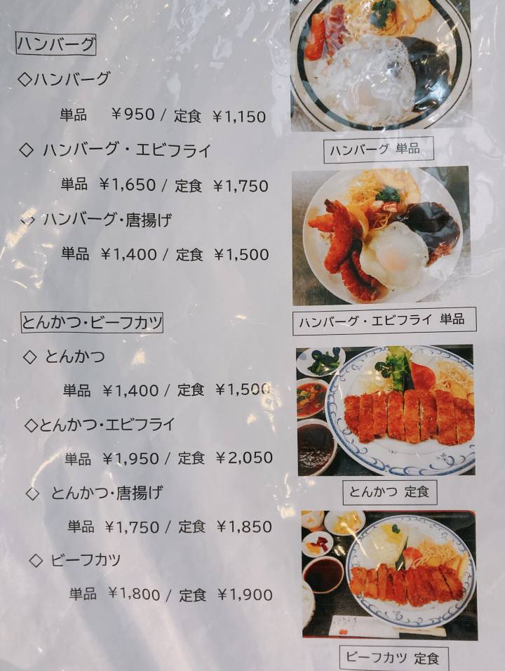 - ハンバーグ、とんかつメニュー