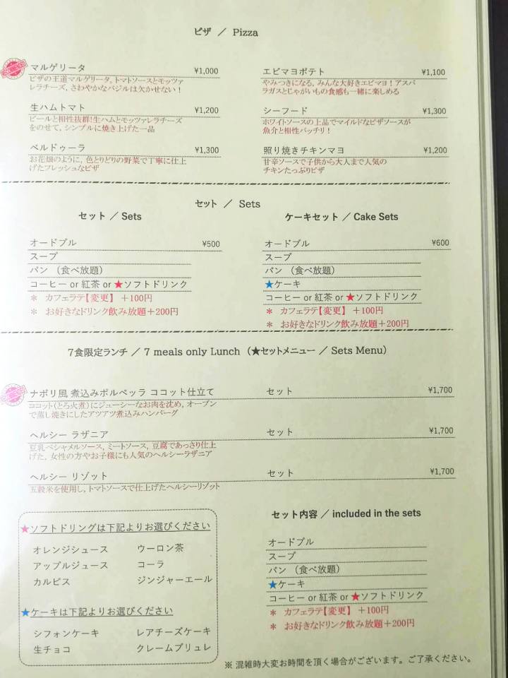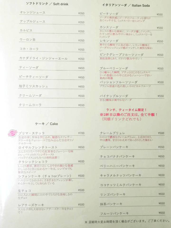 プリマステッラのメニュー