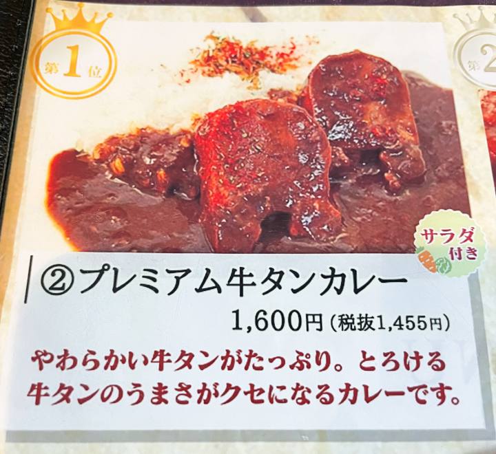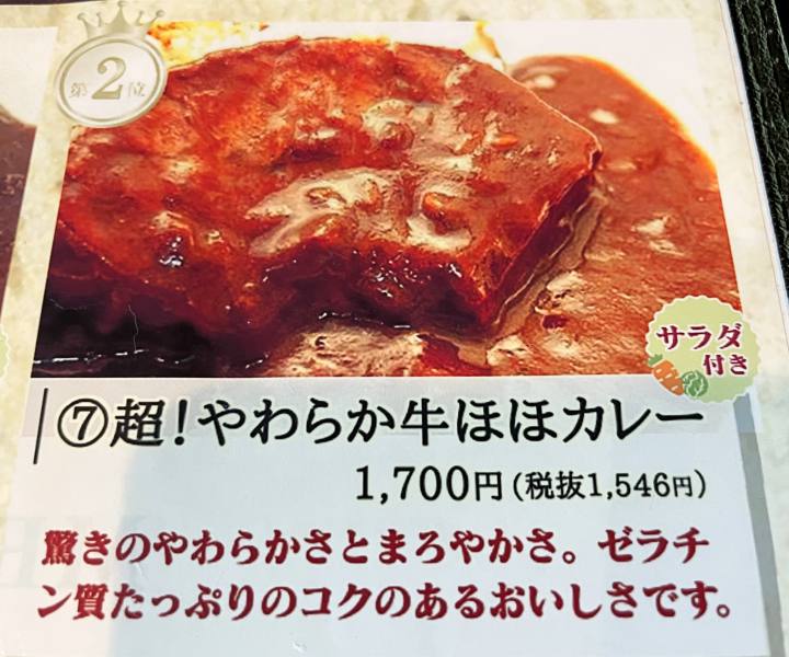 相当悩んで、人気ベスト2位 「牛ほほ肉カレー・黒(コクのある中辛)1,700円」 をオーダー👆