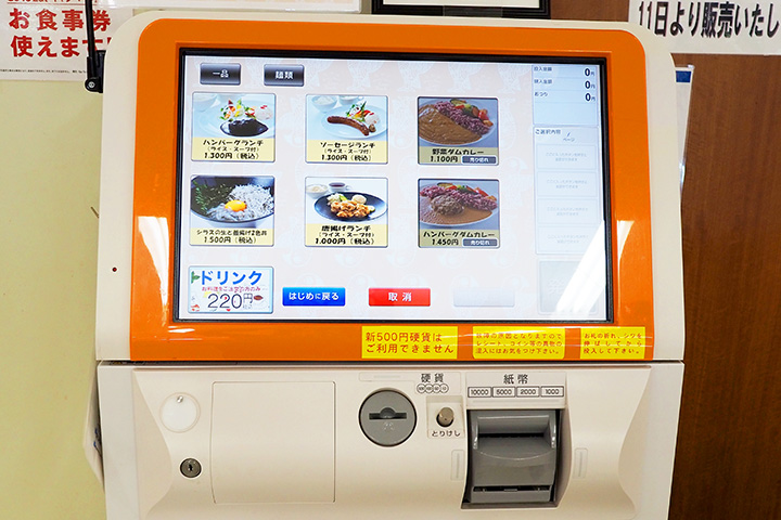 リッシュキッチンは、セルフサービスのレストランです。入口にある食券機でチケットを購入し、カウンターにいる店員さんにチケットを渡してメニューを注文します。