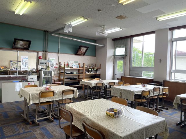 小学校の教室の雰囲気をそのまま残した店内。席数は24席、懐かしい椅子と机が並びます。この雰囲気を味わいに来店されるお客様も多いとか。