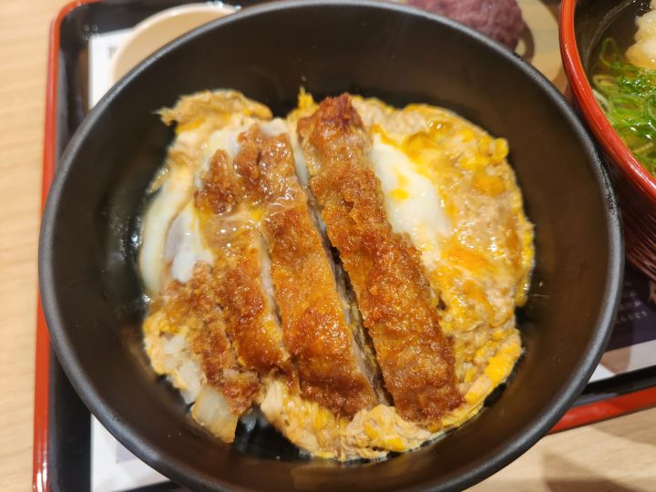 カツとじ丼は、ご飯、卵、カツに、だしと九州しょうゆなどで作り上げた甘くてコクのある丼つゆを使用。丼つゆが染み込んだ卵とカツにふっくらとしたご飯の相性が抜群でした。
