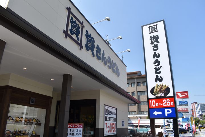 資さんうどん東広島西条店のグランドオープンは7月3日から。26時まで営業しているので、酒蔵通りでお酒を飲んだ後のシメに寄ることもできますよ。気になる人はぜひ行ってみてくださいね。