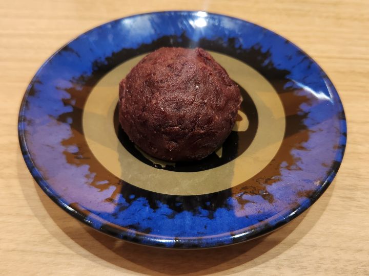 北海道産小豆を100%使用していて、食べると小豆の味をしっかりと感じることができます。甘さだけでなく塩味もあり、うどんと相性ピッタリ。甘い物が苦手でもパクパク食べれるおいしさでした。