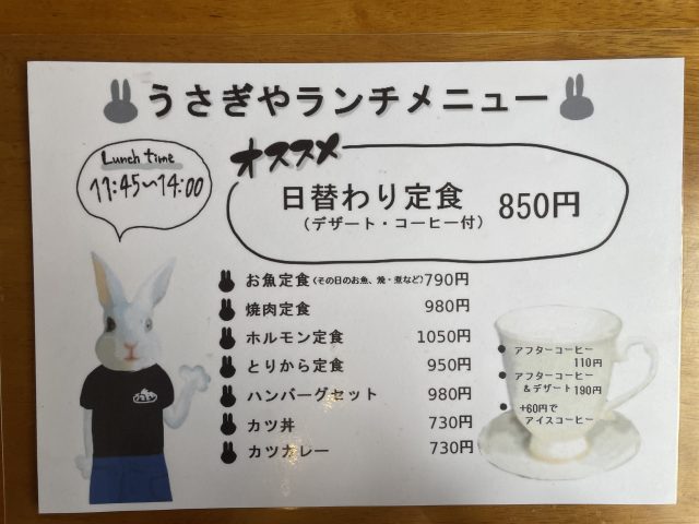 うさぎやのランチメニューは、ほとんどが1000円以下でリーズナブル!